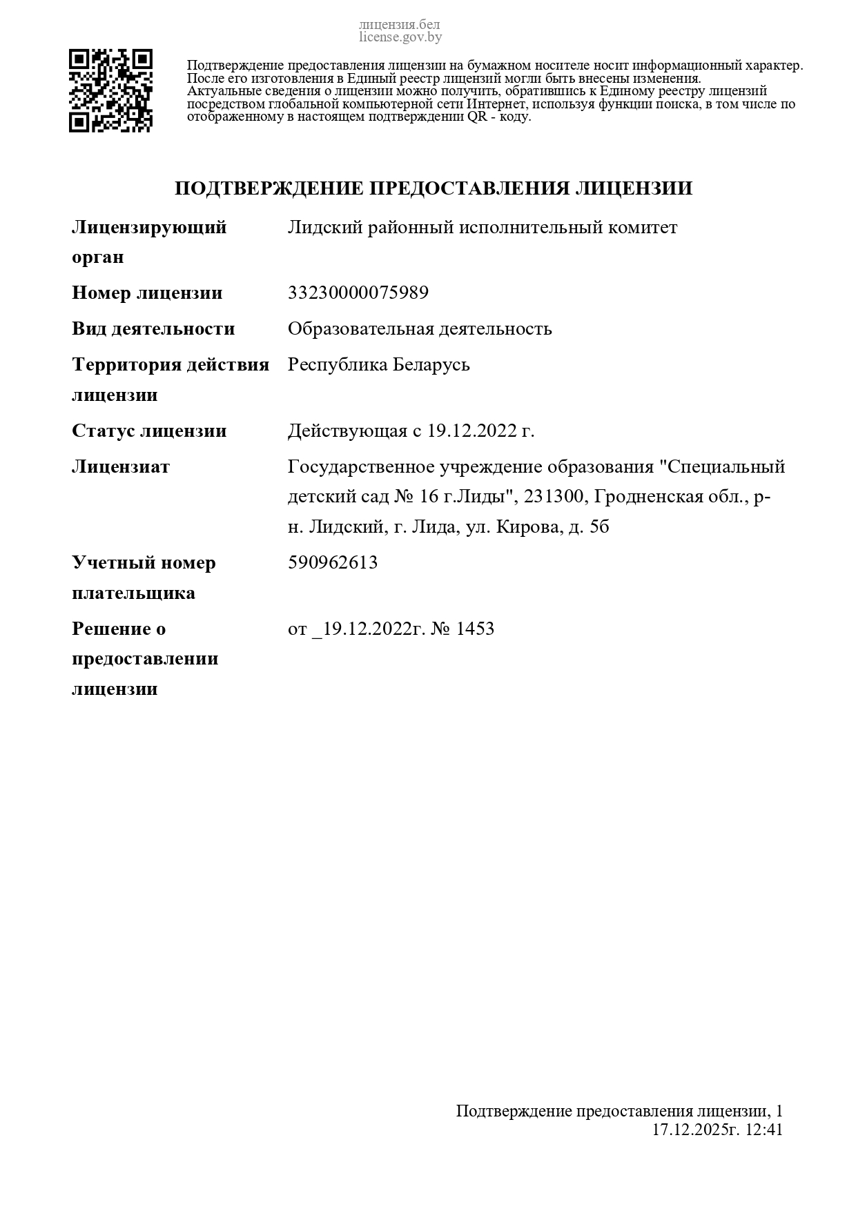 ГОСУДАРСТВЕННОЕ УЧРЕЖДЕНИЕ ОБРАЗОВАНИЯ «СПЕЦИАЛЬНЫЙ ДЕТСКИЙ САД № 16 Г. ЛИДЫ»