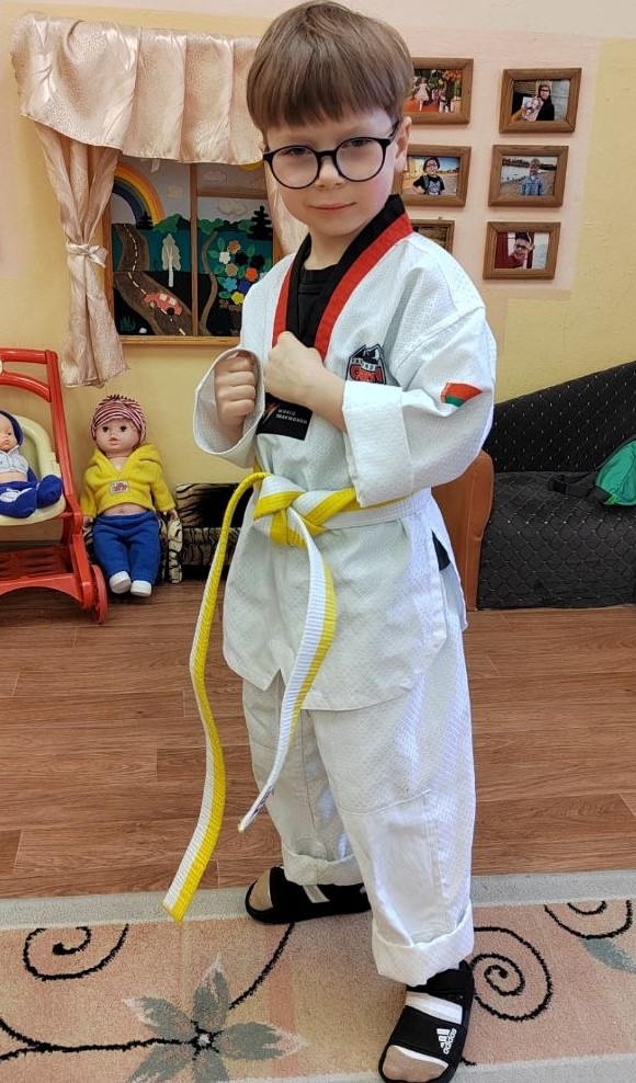 Своим увлечением в проекте Специального детского сада N16 «Расскажи о себе» делится воспитанник старшей группы 2 Кормилицин Богдан. Богдану нравится заниматься тхэквондо, хоть и посещает секцию недолго, но имеет уже бело-желтый пояс. Занятия тхэквондо дисциплинируют, развивают упорство, внимание, ловкость и, конечно, помогают организму окрепнуть. Желаем Богдану побед в соревнованиях!